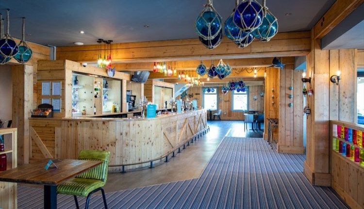 The Nab Bar and Eatery handles meals and drinks with outdoor seating overlooking the adventure playground. The Culver Club delivers evening entertainment from April through October. The beach café means coffee and ice cream without leaving the sand. Indoor soft play area sorts rainy mornings.